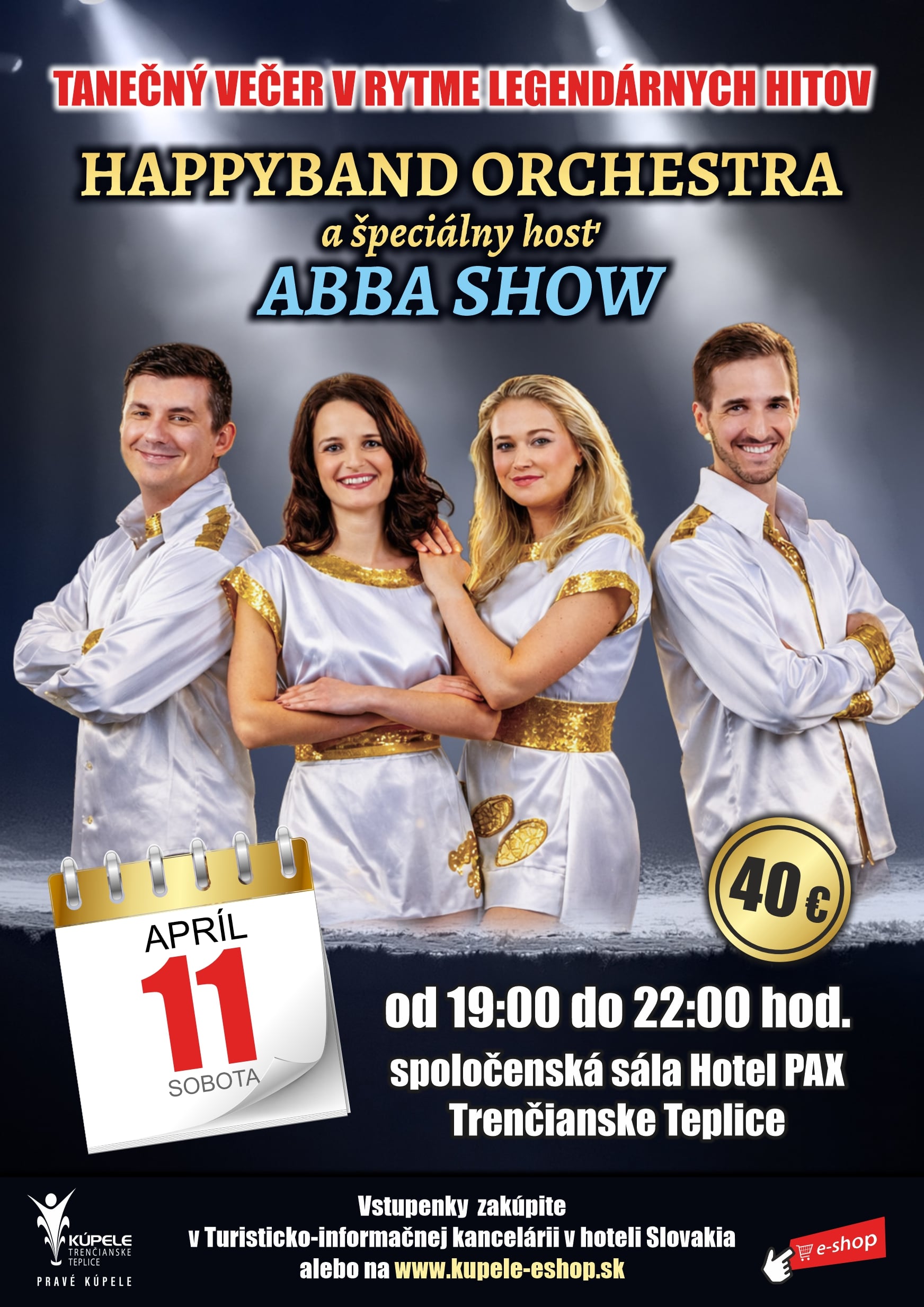 Hlavným lákadlom pobytu je sobotný večer, počas ktorého sa kongresová sála hotela Pax rozozvučí legendárnymi hitmi skupiny ABBA. O skvelú atmosféru sa postará HAPPYBAND ORCHESTRA a špeciálny hosť ABBA Show, vďaka ktorým si môžete zaspievať a zatancovať na nesmrteľné skladby ako Mamma Mia, Dancing Queen či Waterloo. Tento koncert v trvaní troch hodín je už zahrnutý v cene pobytu. Dajú sa však kúpiť aj iba vstupenky na koncert.