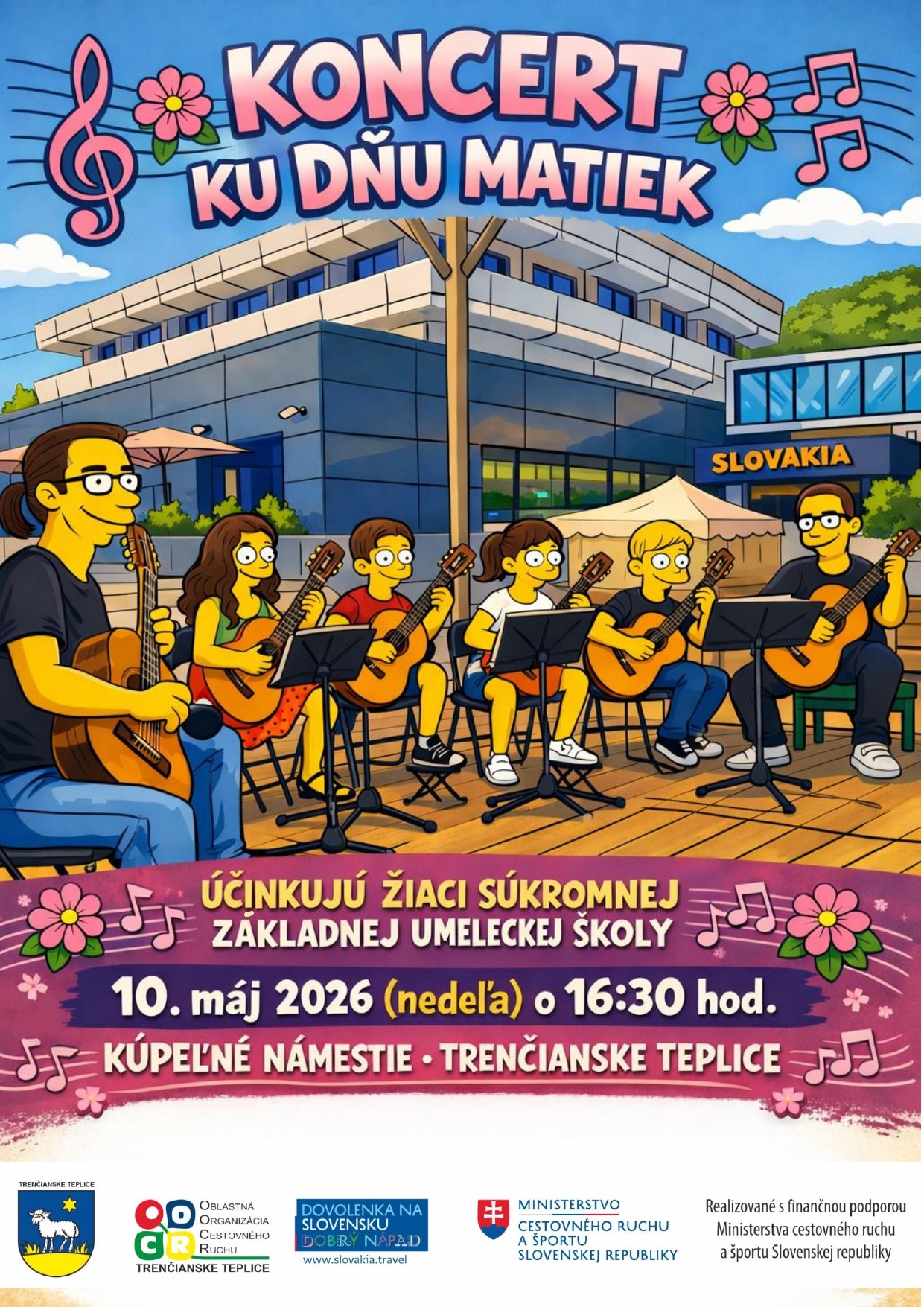 Koncert ku Dňu matiek sa bude konať 10. mája 2026 na Kúpeľnom námestí v Trenčianskych Tepliciach.