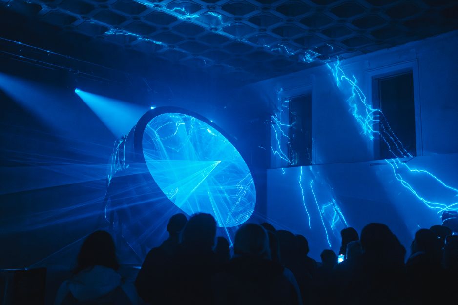 1. Rast – blekkspurt1 (NO) – audiovizuálna priestorová projekcia vytvorená pre podzemné industriálne priestory pod galériou FOR MAAT, interiér