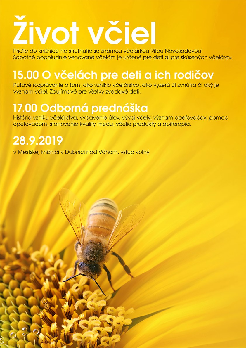 Príďte do knižnice na stretnutie so známou včelárkou Ritou Novosadovou! Sobotné popoludnie venované včelám je určené pre deti aj pre skúsených včelárov.