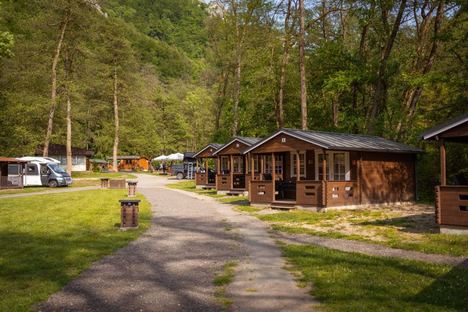 Pri Manínskej tiesňave je kemping priamo pri vstupe do kaňonu. Nájdete tu miesta pre karavany aj stany, chatky a potrebné zázemie vrátane vody a hygienických zariadení. Ráno ste za pár minút na náučnom chodníku a po výlete sa vrátite na miesto, kde máte všetko potrebné. Pozrite si naše video z výletu karavanom TU.