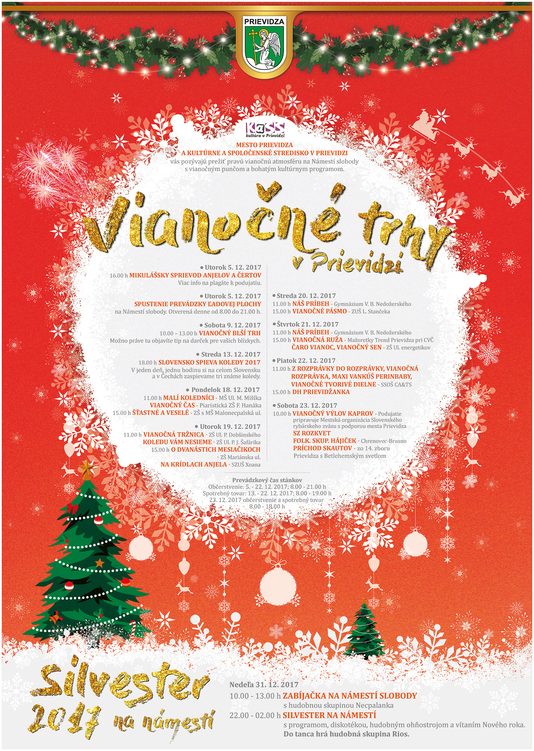From December 5, 2017, Christmas markets are running on the square in Prievidza. Within these markets, you can enjoy not only the classic stalls and Christmas bounty but also many other events. For example, if you have not found the right gift under the tree, you can visit the Christmas Flea Market, which will take place on Saturday 9 December from 10.00 to 13.00. Maybe you can make a perfect gift for your Christmas gift :) For more information about the event, please see the attached poster.
